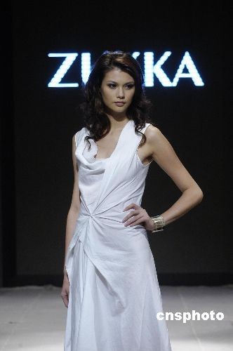 2008年10月31日,2009ZUKKA春夏時(shí)裝發(fā)布會(huì)在上海浦東鄂爾多斯國際大廈15Space創(chuàng)意園舉行。著名模特王文琴領(lǐng)銜走秀。ZUKKA整場發(fā)布會(huì)以“溫度”為主題,呼吁大家多關(guān)注我們?nèi)祟惞餐纳姝h(huán)境,關(guān)愛我們的地球。中新社發(fā) 董鴻景 攝