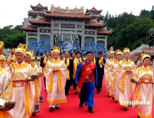 十一月一日,由海峽兩岸攜手共同舉辦的第十屆湄洲媽祖文化旅游節(jié)在“媽祖故鄉(xiāng)”福建莆田湄洲島開幕,來自十七個(gè)國家及地區(qū)的近三百家媽祖文化機(jī)構(gòu)、萬余名海內(nèi)外信眾回到“娘家”,共祭媽祖。圖為當(dāng)日在該媽祖文化旅游節(jié)上舉行的五洲信眾同祭媽祖大典。中新社發(fā) 劉可耕 攝