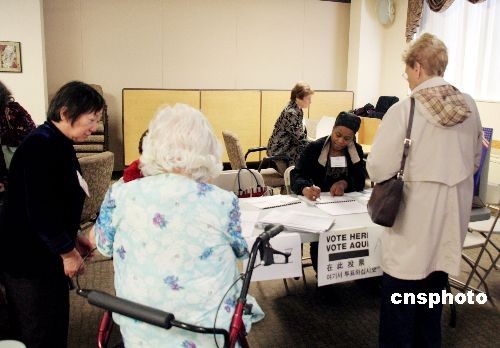 美國東部時間4日,美國總統(tǒng)選舉投票開始.在紐約新華裔移民聚居地法拉盛地區(qū)投票點(diǎn),不僅有中文“在此投票”的說明,更配有專職中文翻譯,可幫助講廣東話、福州話乃至上海話的居民順利投票。中新社發(fā) 魏晞 攝