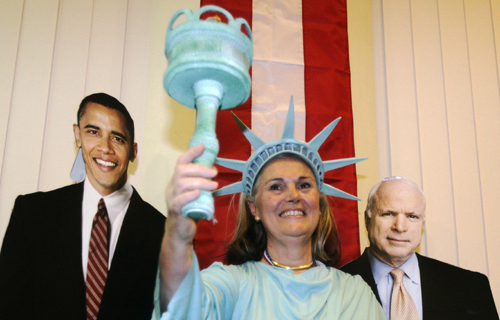 11月4日,美國(guó)駐倫敦使館,一名使館工作人員裝扮成自由女神。