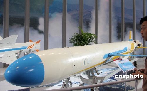 圖為由中國(guó)航天科工集團(tuán)公司研制的C602導(dǎo)彈首次亮相珠海航展,也是該型導(dǎo)彈第一次公開(kāi)露面。C602是新型遠(yuǎn)程反艦導(dǎo)彈,具有射程遠(yuǎn)、命中精度高、突防能力強(qiáng)、毀傷威力大、使用靈活、生存能力強(qiáng)等特點(diǎn),可裝載于機(jī)動(dòng)車(chē)輛或水面艦船。中新社發(fā) 孫自法 攝