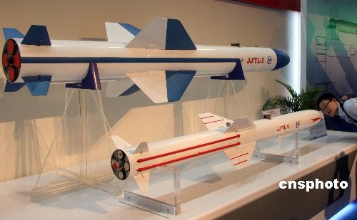 圖為由中國航空工業(yè)集團公司研制的“天龍”一號、二號導(dǎo)彈在航展上亮相。中新社發(fā) 孫自法 攝