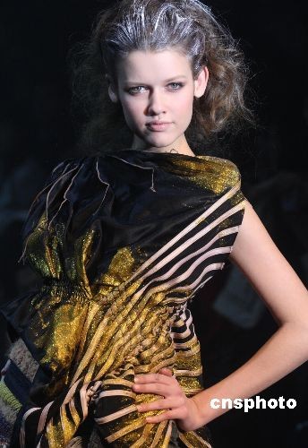 圖為模特展示2009春夏《長(zhǎng)江系列》高級(jí)時(shí)裝發(fā)布新款。中新社發(fā) 錢興強(qiáng) 攝