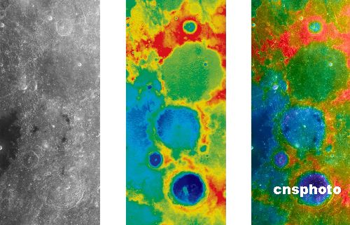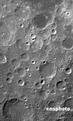 圖為2007年12月11日,中國國家航天局發(fā)布的由“嫦娥一號(hào)”衛(wèi)星11月26日獲取的6軌立體相機(jī)數(shù)據(jù)拼接而成的“嫦娥撞擊坑”。