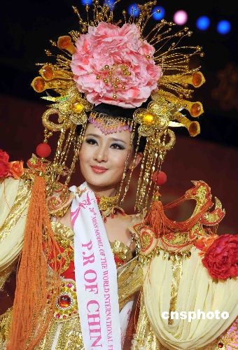 十一月二十二日晚,第二十屆世界模特小姐大賽國際總決賽頒獎晚會在深圳民俗文化村舉行,來自俄羅斯、美國、英國、法國、德國、意大利、日本等國家和地區(qū)的六十一名佳麗角逐本賽冠、亞、季軍以及最佳上鏡獎、最佳晚裝獎、最佳泳裝獎等。圖為中國小姐參賽佳麗王紅敏亮相。 中新社發(fā) 陳文 攝