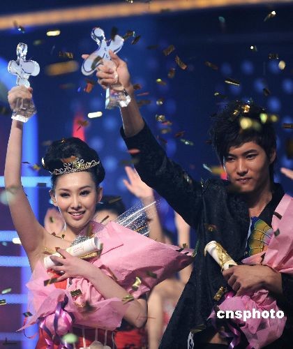 日前,2008第九屆CCTV模特電視大賽緊張進(jìn)行。經(jīng)過(guò)激烈的爭(zhēng)奪曹軼霖和李昕岳分別奪得該賽男女冠軍。本次總決賽暨頒獎(jiǎng)晚會(huì)還獨(dú)具匠心地引入了“非物質(zhì)文化遺產(chǎn)”中的中國(guó)元素。中新社發(fā) 廖攀 攝