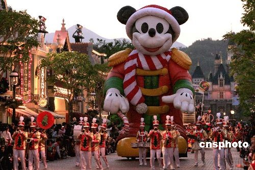 十一月二十七日,香港迪士尼樂園舉行盛大雪映舞動(dòng)巡游,迎接圣誕節(jié)。中新社發(fā) 張勤 攝