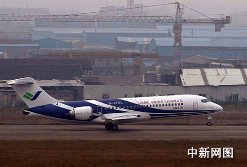 中國首架自主研制、擁有完全自主知識(shí)產(chǎn)權(quán)的新型渦扇支線客機(jī)ARJ21-700飛機(jī)28日首飛。當(dāng)日12時(shí)20分許,飛機(jī)經(jīng)過滑行后,輕盈騰空而起,經(jīng)過約一個(gè)小時(shí)的飛行,飛機(jī)順利返航著陸。中新社記者 孫自法 攝