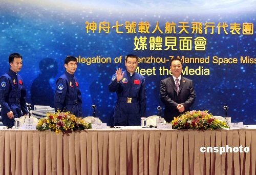 十二月五日,“神舟七號(hào)”載人航天飛行代表團(tuán)抵達(dá)香港,展開(kāi)四天訪(fǎng)問(wèn)。當(dāng)日下午代表團(tuán)在酒店與新聞界會(huì)面。
