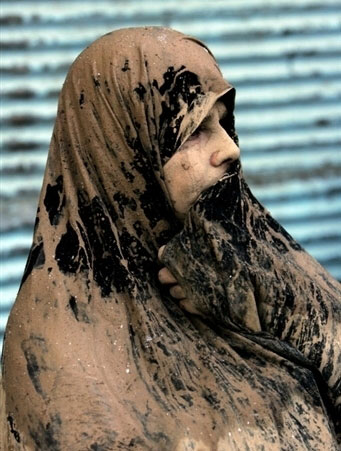 2008年1月19日,在伊朗城市霍拉馬巴德。一位什葉派穆斯林婦女頭戴面紗,觀(guān)看阿修羅宗教節(jié)的儀式。