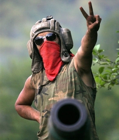 2008年8月14日,一名來自阿布哈茲的士兵在科多里峽谷對(duì)鏡頭舉起了象征勝利的手勢。