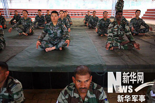 圖:中印聯(lián)訓(xùn)解放軍體驗(yàn)印度瑜伽