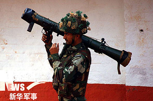擔(dān)負(fù)警戒任務(wù)的印方參訓(xùn)軍人。新華社記者 李剛 攝