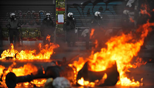 圖:希臘騷亂升級(jí) 雅典恍如“戰(zhàn)場(chǎng)”