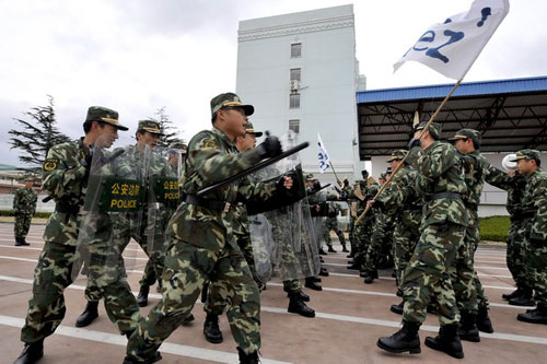 防暴隊(duì)員在進(jìn)行防暴課目訓(xùn)練