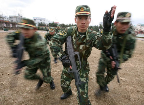 防暴隊(duì)員在進(jìn)行戰(zhàn)術(shù)合成課目訓(xùn)練