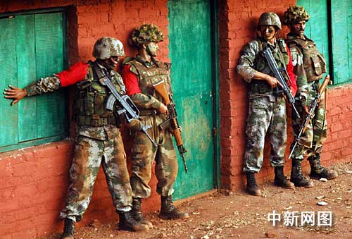 正在印度貝爾高姆舉行的“攜手—二00八”中印陸軍反恐聯(lián)合訓練十一日進入第三階段。中新社記者 孫宇挺 攝