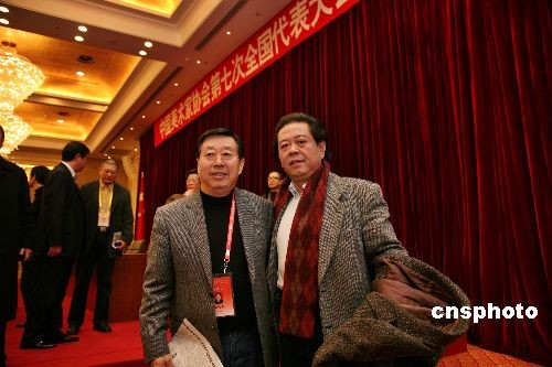 新當(dāng)選的中國(guó)美協(xié)主席劉大為(左)和新當(dāng)選的中國(guó)美協(xié)中國(guó)美協(xié)秘書長(zhǎng)劉健。
