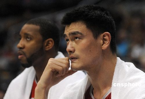 姚明在快船中鋒蘭多夫面前并沒(méi)有占到便宜。