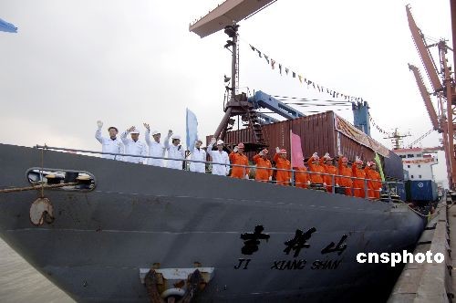 12月15日上午,閩臺(tái)海上貨運(yùn)直航首航儀式在福州青洲港區(qū)隆重舉行,“吉祥山”號(hào)、“金海緣”號(hào)、“華航三號(hào)”、“興華輪”號(hào)4艘船舶將從該港區(qū)出發(fā)前往臺(tái)北、基隆、高雄3港。福建廈門港4艘、泉州港2艘船舶也同時(shí)出發(fā),直航臺(tái)灣。