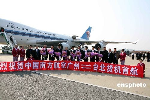 發(fā)表評論    由中國南方航空股份有限公司執(zhí)飛的兩岸首架直航貨運包機,于十二月十五日下午十五時從廣州白云國際機場起飛,預(yù)計飛行一小時四十五分鐘后降落臺北桃園機場。 該架貨機型為目前世界上最先進(jìn)、最大型的波音七四七-四零零F全貨機。中新社發(fā) 羅廣泰 攝