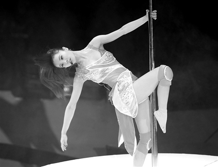 當(dāng)然,最猛的還是“舞娘”蔡依林“七十二變”的舞臺功夫。劈腿、倒掛、直立一字馬、無重力旋轉(zhuǎn),體操、瑜珈、彩帶舞、鋼管舞、芭蕾舞、機(jī)械舞、踢踏舞……爭分奪秒的勁歌熱舞看得觀眾應(yīng)接不暇。《玩美》、《招牌動作》等快歌中,蔡依林聳肩、扭腰、甩胯,盡顯性感,《一個(gè)人》、《檸檬草的味道》等傷感情歌中,她又表情憔悴,惹人憐惜。當(dāng)穿皮衣、面無表情的男舞伴登場,一陣犬吠聲中,蔡依林最魅惑的武器“鋼管舞”出臺了——匍匐、旋轉(zhuǎn)、騰空飛躍、蜿蜒纏繞、無聲扭轉(zhuǎn),最后一個(gè)高難度動作“正手握桿360度接反手握”更是驚起了現(xiàn)場一片驚呼聲!而《看我七十二變》、《日不落》、《愛情36計(jì)》、《倒帶》等蔡氏經(jīng)典歌曲都不斷引起現(xiàn)場高聲大合唱,剛剛嫁入華納的蔡依林興致高昂,她還“打廣告”告訴成都觀眾自己除了一張英文專輯《愛的練習(xí)曲》外,幾乎兩年未發(fā)新專輯,但很快一張全新專輯就會推出。