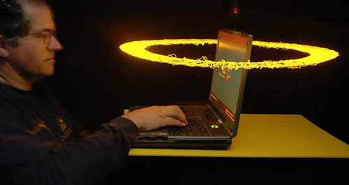 圍繞著手提電腦的閃電束
