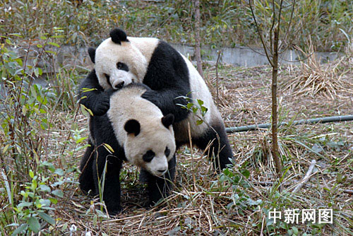 在鏡頭面前團(tuán)團(tuán)圓圓大秀“恩愛”(12月22日攝于四川雅安)