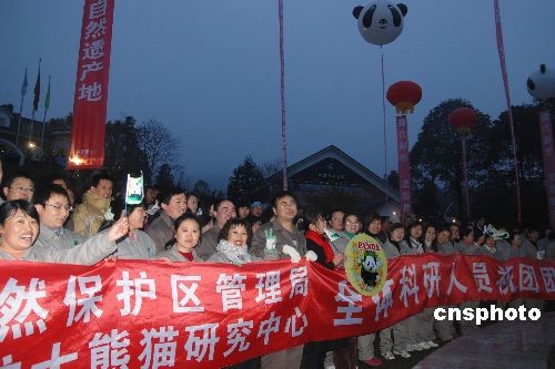 大熊貓研究中心工作人員歡送"團(tuán)團(tuán)""圓圓"