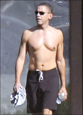 發(fā)表評論  據(jù)英國媒體報道,即將成為美國首位黑人總統(tǒng)的奧巴馬近日攜妻子米歇爾、兩個女兒前往夏威夷度假,他脫掉了T-shirt,向外界展示了他完美的胸部和腹部肌肉。
