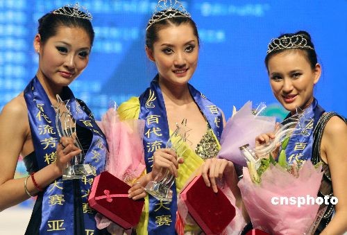 12月25日晚,2008百代流芳模特大賽中國總決賽”在北京海淀劇院上演。選自中國各分賽區(qū)的18位佳麗先后進(jìn)行了內(nèi)衣、休閑裝、中國歷代服飾和晚裝等多個(gè)比賽環(huán)節(jié)的角逐,最終由11號(hào)選手高潔摘得桂冠,15號(hào)選手刑璐和07號(hào)選手李卓分別獲得亞軍和季軍。中新社發(fā) 錢興強(qiáng) 攝