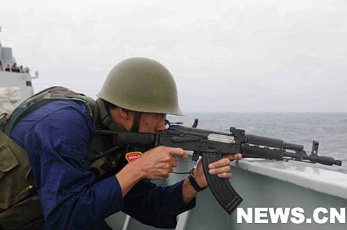 圖為海上目標(biāo)模擬射擊。朱鴻亮 攝
