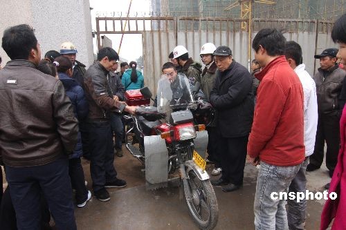 民工從事故現(xiàn)場出來。 中新社發(fā) 郭國權 攝