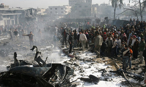 以色列戰(zhàn)機(jī)27日和28日晨對(duì)哈馬斯控制的加沙地帶發(fā)動(dòng)了大規(guī)?找u,對(duì)空襲目標(biāo)投射了100多噸的炸彈,已造成至少271人死亡620人受傷。