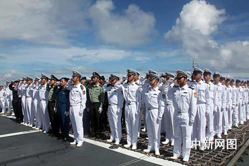 中新網(wǎng)“海口”艦12月28日電(記者 孫自法)12月28日上午,南中國海當天艷陽高照、海風吹拂,中國海軍護航艦艇編隊護航官兵列隊甲板,隆重舉行“走向大洋”宣誓儀式。