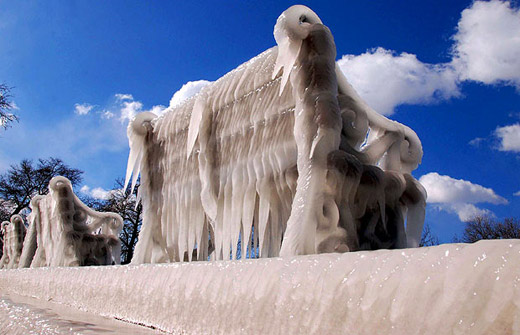 2月17日希臘北部一個(gè)小城,戶(hù)外的長(zhǎng)凳被冰覆蓋。