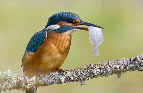 據(jù)英國(guó)媒體報(bào)道,英國(guó)業(yè)余攝影師保羅•理查茲近日在英國(guó)彭布魯克郡一處河口幸運(yùn)地拍到了一只小翠鳥(niǎo)捕食和進(jìn)食的場(chǎng)面,發(fā)現(xiàn)這只雌性小翠鳥(niǎo)在二小時(shí)內(nèi)捕獲并吞吃了6種不同的魚(yú)類(lèi),有比目魚(yú)、蝦、牡蠣、蝦虎魚(yú)、胭脂魚(yú)和小黑鱸,F(xiàn)年55歲的理查茲說(shuō):“我奇怪地看著這里發(fā)生的一切。這表明此鳥(niǎo)和我們?nèi)祟?lèi)一樣,也喜歡吃不同種類(lèi)的食物。我看到她一天三次來(lái)河口捕魚(yú),每次能捕到4、5條魚(yú)。對(duì)于這么小的一只鳥(niǎo)來(lái)說(shuō),這可以說(shuō)頓頓都是大餐!边@也難怪,翠鳥(niǎo)每天得吃自身體重一樣多的食物才能活下來(lái),因此對(duì)其飸餮畫(huà)面不必大驚小怪。