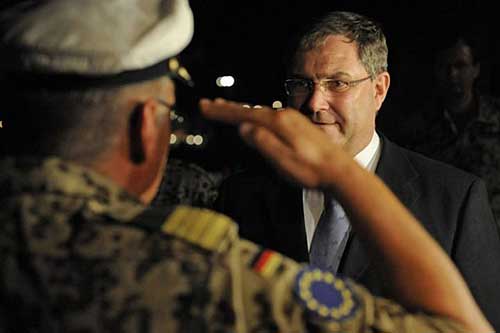 近日,德國國防部長弗朗茨·約瑟夫·容為參加歐盟領(lǐng)導(dǎo)的打擊海盜行動的德國官兵送行,此次行動德國派出了卡爾斯魯赫(Karlsruhe)號護衛(wèi)艦參與。