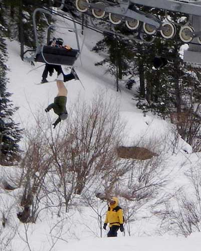 1月6日,據(jù)英國媒體報道,美國科羅拉多一處滑雪場日前上演了一出尷尬場面。一名男子在上纜車時,因座椅故障,整個人頭朝下翻轉(zhuǎn)了下來,所幸他的雪橇將他卡在纜車上,沒有掉下來。但是令人尷尬的是,他的褲子被扯下來,整個下半身暴露在冰雪寒風(fēng)中,直到15分鐘后才有工作人員將他救下來。