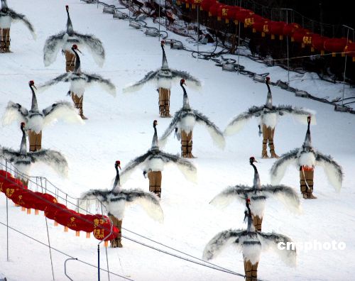 2009中國沈陽國際冰雪節(jié)準(zhǔn)備就緒,將于1月11日正式開幕。在開幕式預(yù)演上,幾百只由學(xué)生扮演的仙鶴成為最大亮點,格外引人注目。