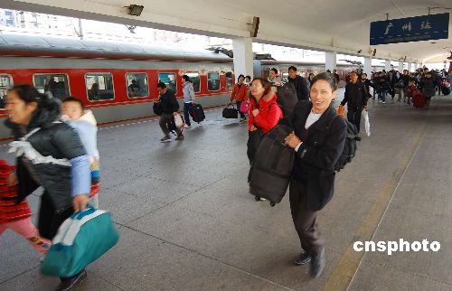 廣州火車站人潮初現,進站的返鄉(xiāng)旅客十分興奮。中新社發(fā) 柯小軍 攝