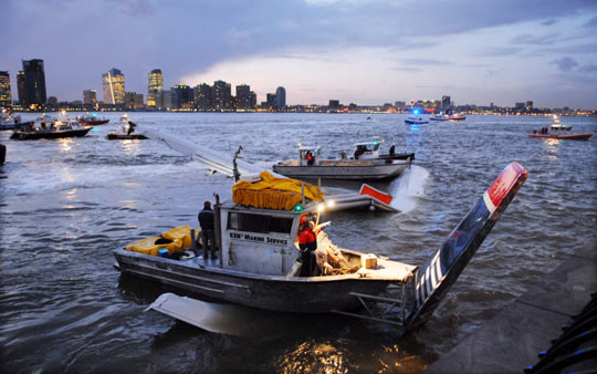 1月15日,在美國紐約的哈德遜河上,救援人員對墜河飛機(jī)上的乘客實(shí)施營救。