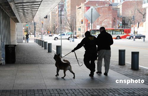 當(dāng)選為美國第四十四任總統(tǒng)的奧巴馬,將于三天后進(jìn)駐白宮。由于情報(bào)顯示安全形勢(shì)嚴(yán)峻,美國負(fù)責(zé)保衛(wèi)總統(tǒng)安全的美國K-9特種警察加緊在該區(qū)域內(nèi)嚴(yán)格戒嚴(yán),四處搜尋,力爭(zhēng)新總統(tǒng)就職平安。圖為美國K-9特種警察在白宮附近街道巡邏。