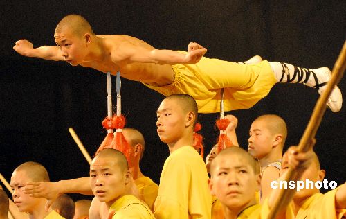 1月16日晚上,世界聞名的少林武僧表演團(tuán)在云南省紅河州進(jìn)行少林武術(shù)的表演。
