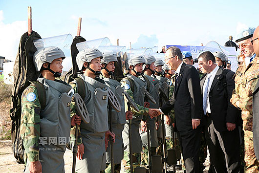潘基文視察維和部隊(duì) 專程接見中國(guó)掃雷官兵(3)