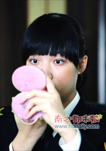 “目前服裝是春秋裝”,特勤隊負(fù)責(zé)人鄭潔華說,夏裝將是白色襯衣,目前的制服幾乎裝不下任何東西,近日每人還將配個小腰包,內(nèi)裝紙筆,負(fù)責(zé)執(zhí)法過程中的記錄和統(tǒng)計。