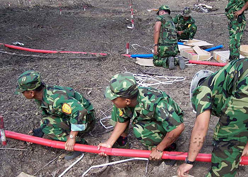掃雷爆破筒是我軍在中越邊境大掃雷中研制而成并逐漸改進后的裝備。其研制者當(dāng)時受竹子的啟發(fā),提出了研制“掃雷爆破筒”的創(chuàng)意:先打通竹關(guān)節(jié),將炸藥灌進竹筒,縱向伸進雷區(qū)引爆地雷。經(jīng)某工兵團在國外多次掃雷實踐證明,使用其進行爆破掃雷,進度比傳統(tǒng)爆破手段提高數(shù)倍。