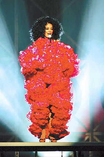 在拉斯維加斯舉行的美國(guó)公告牌音樂(lè)頒獎(jiǎng)禮上,老牌歌手戴安娜·羅斯身著鮮花裝扮“紅色康乃馨”放聲高歌。