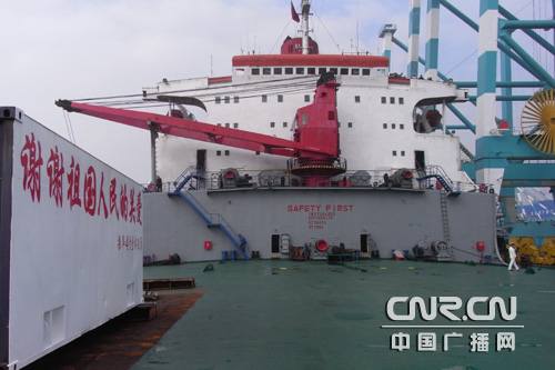 12月17日在亞丁灣海域遭遇索馬里海盜襲擊,成功逼退海盜的中國(guó)交通建設(shè)集團(tuán)振華4號(hào)輪22日返回上海振華港機(jī)長(zhǎng)興島修造基地。22日早上8:32分振華四號(hào)從長(zhǎng)江橫沙錨地起錨向長(zhǎng)興島行駛,10:30左右在振華港機(jī)長(zhǎng)興島修造基地靠岸。記者吳善陽(yáng) 王磊