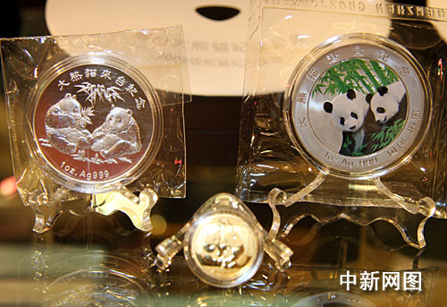 為紀(jì)念大熊貓團(tuán)團(tuán)、圓圓來臺與民眾見面。位于臺北市和平東路三段68——1號的臺灣大洋金銀幣有限公司特委請深圳國寶鑄幣廠和臺灣“中央鑄幣廠”鑄造大熊貓赴臺紀(jì)念銀章和大熊貓來臺紀(jì)念銀章各一枚。中新社記者 陳立宇 攝